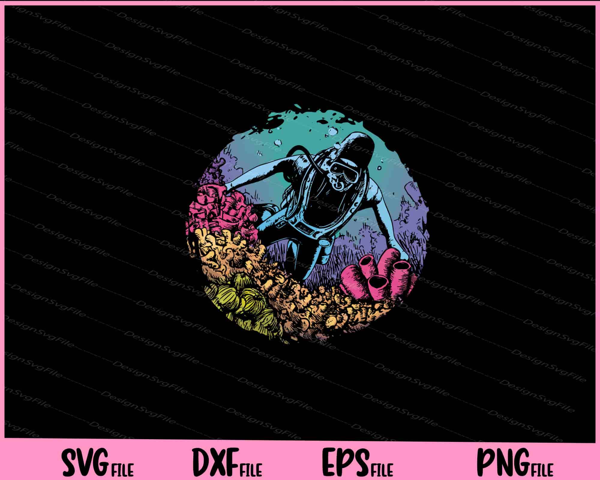 Product: Diver Underwater In Coral Reef SVG Cutting Printable Files