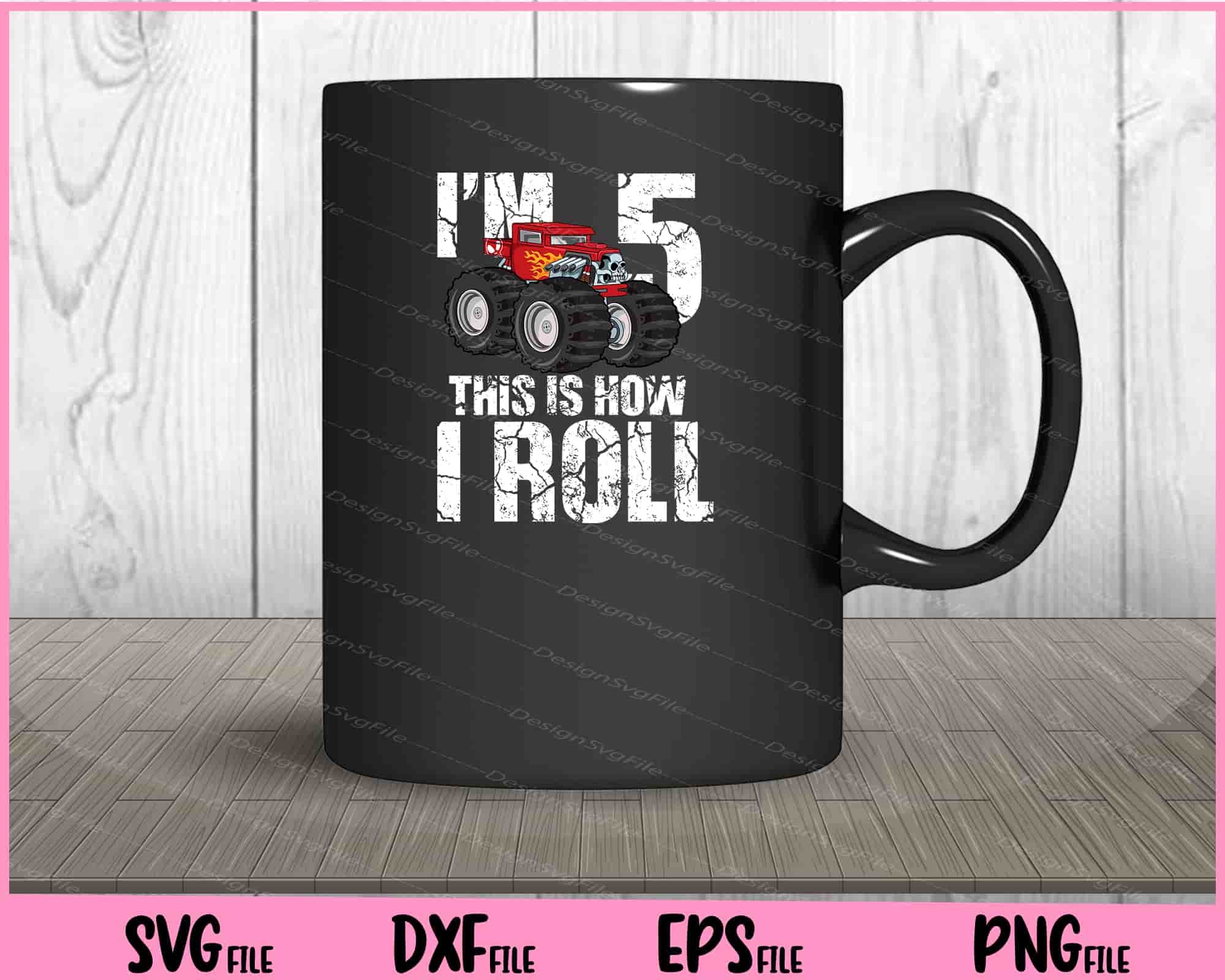 Product: Kids Monster Truck 5th Birthday Boy 5 Year Old SVG PNG Cutting Printable Files