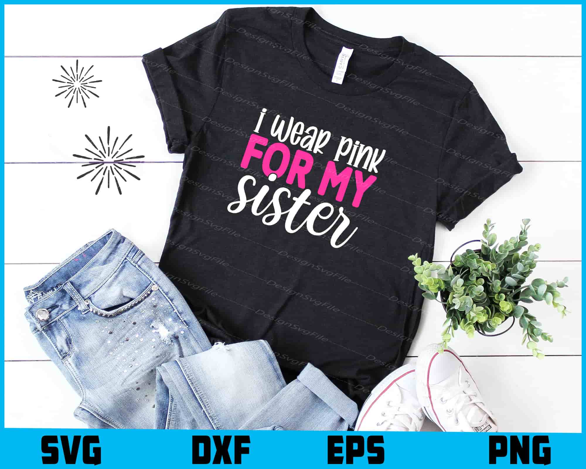 Product: I Wear Pink For My Sister Breast Cancer SVG PNG Printable File