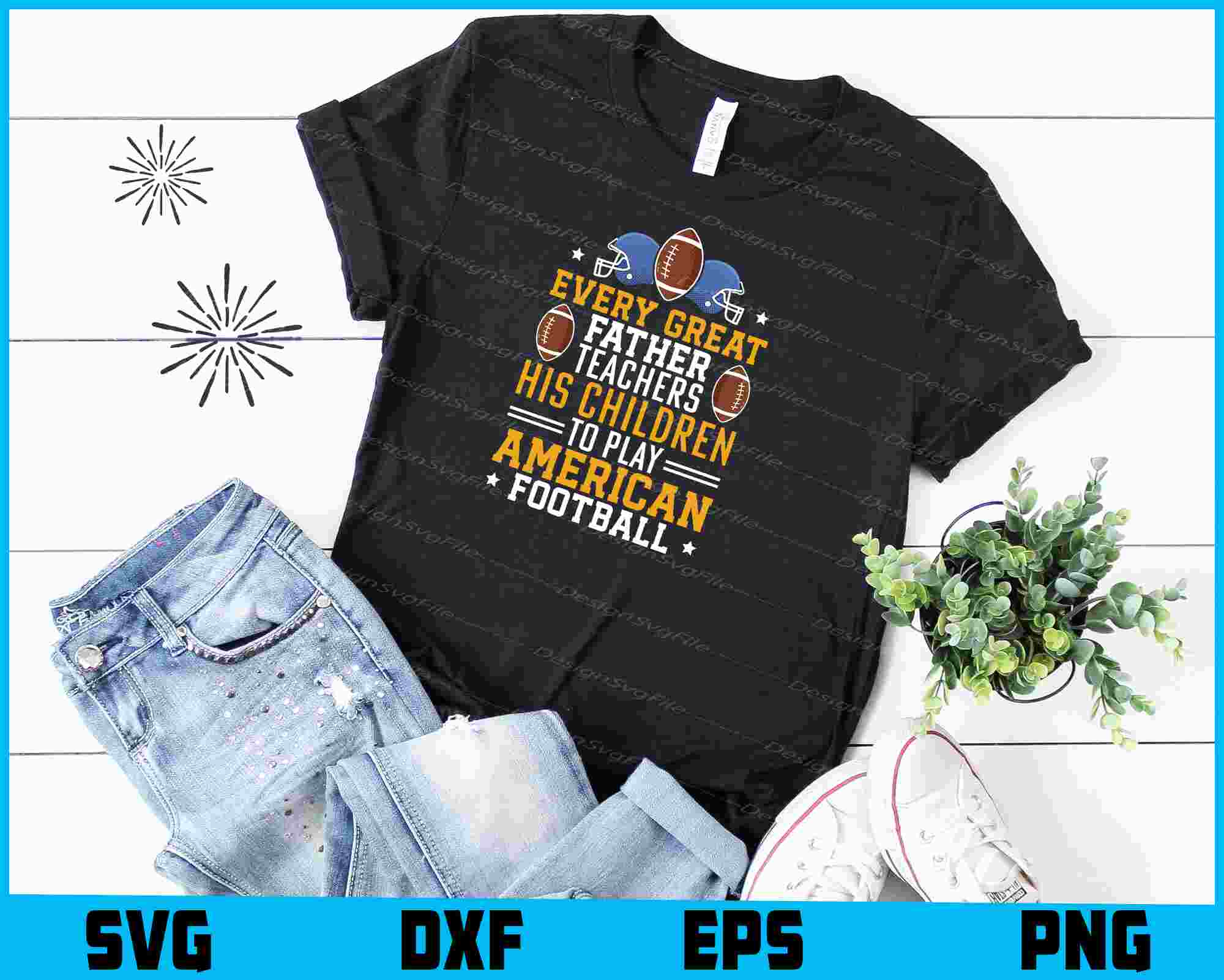 Welcome to Designsvgfile.com! Product: Every Great Father Teachers American Football SVG PNG Printable File Included Files: .EPS file: Ideal for use with Adobe Illustrator, Inkscape, Corel Draw, and more. .PNG file: High-resolution transparent background (300dpi). .SVG file: Perfect for Cricut and Silhouette cutting machines, enabling a variety of crafting projects....