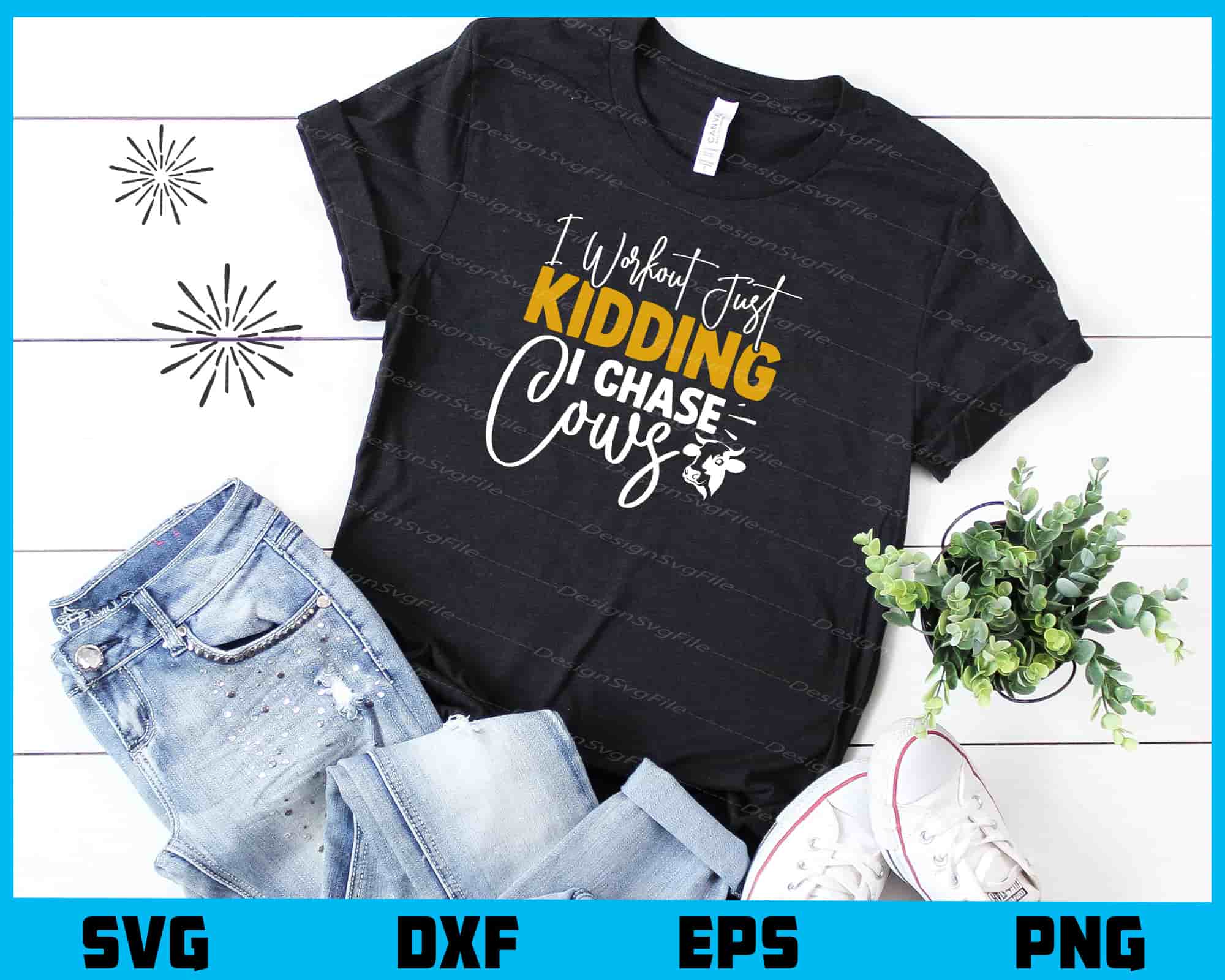 Welcome to Designsvgfile.com! Product: I Workout Just Kidding I Chase Cows SVG Cutting Printable File Included Files: .EPS file: Ideal for use with Adobe Illustrator, Inkscape, Corel Draw, and more. .PNG file: High-resolution transparent background (300dpi). .SVG file: Perfect for Cricut and Silhouette cutting machines, enabling a variety of crafting...